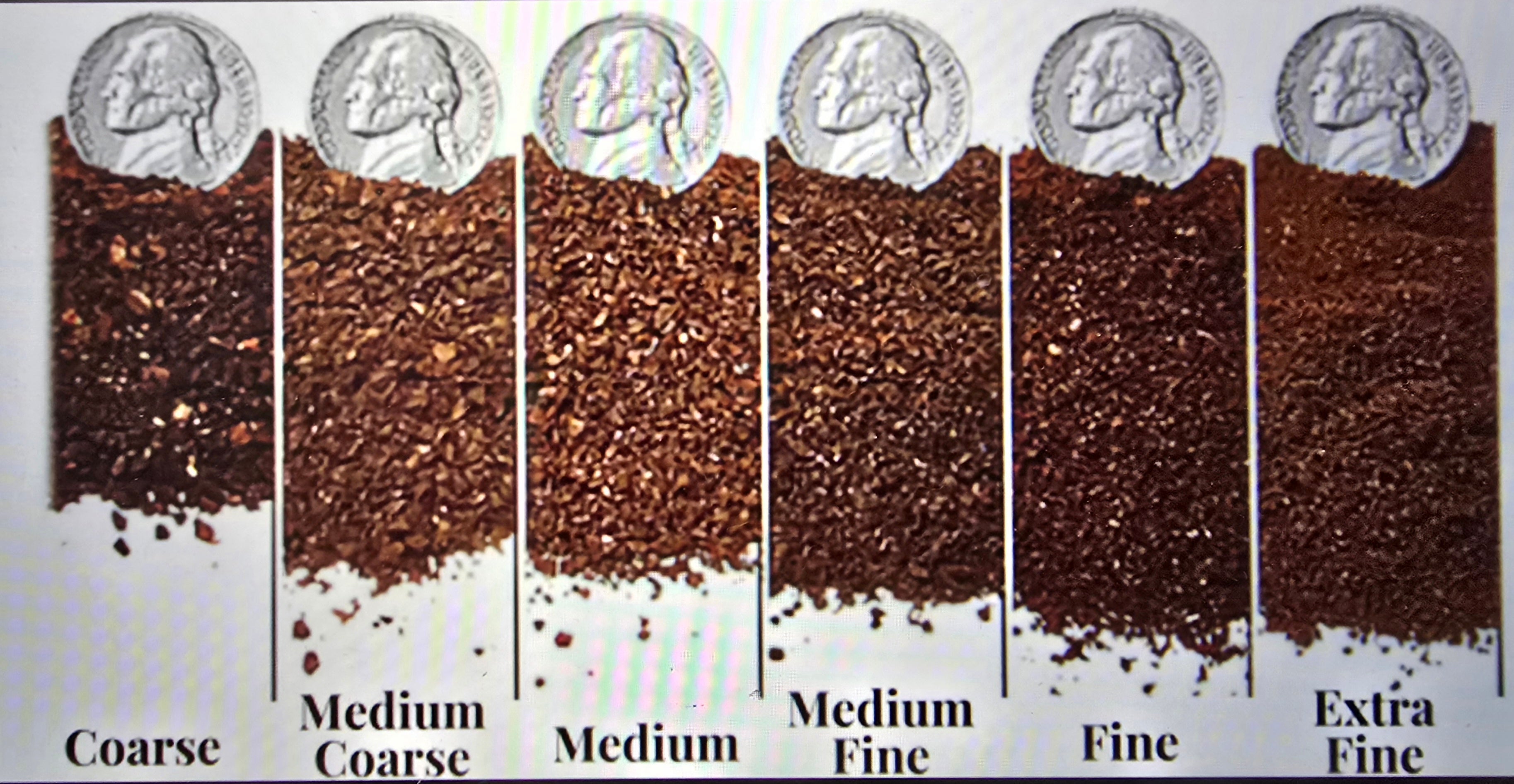 • Coarse Grind - Large pieces that allow water to flow quickly through, great for French press